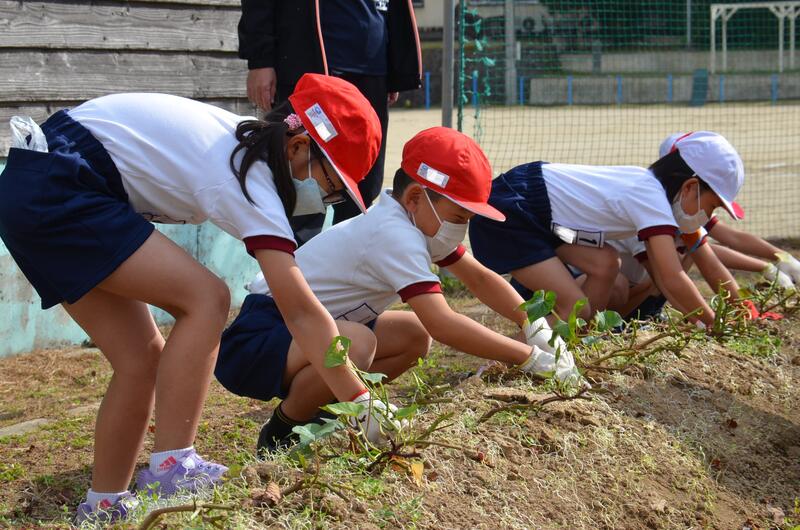 11月15日(火)1年生・2年生・3年生が5月末に植えたサツマイモの収穫をしました。