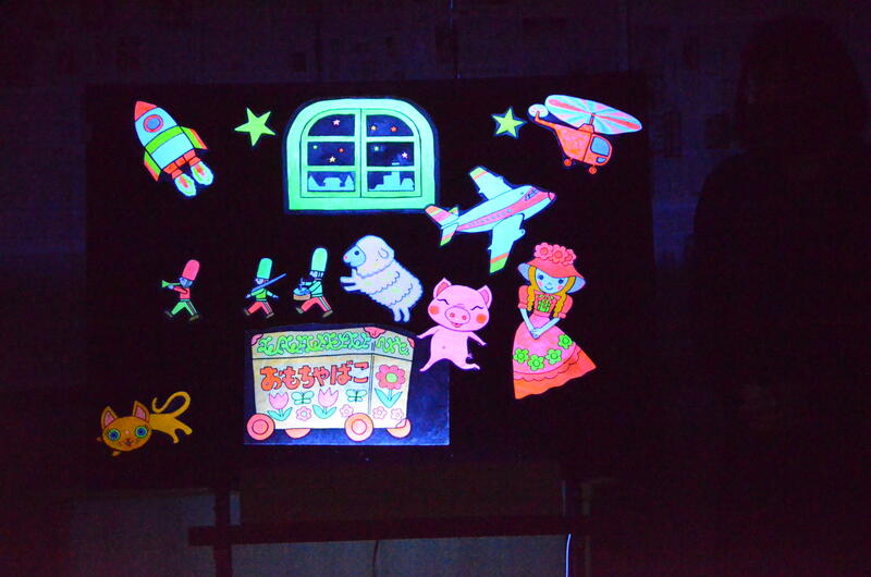 国語の学習で朗読をすることがありますが、早木先生のペープサートやパネルを使ったお話は、聞き手をしっかり引きつけ、楽しませる魅力があり、それを見聞きした子供たちには、話すことの方法を学ぶよい機会になっています。また、ブラックパネルシアターは、映画館に入ったような気分になり、色鮮やかな挿絵や音楽に、子供たちはしばし物語の世界にひたっていました。