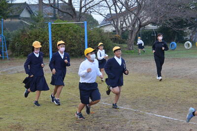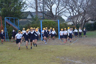 11月21日(月)から、しばらく中止しておりました九一マラソンを再開しました。運動場は明るいけれど、まだ太陽が差し込まないからか、空気は少しひんやりしていますが、子供たちは九一マラソンを楽しむように勢いよく走っています。
