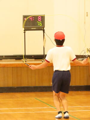大会では、自分が宣言した技を30秒間跳んで何回できたかを記録したり、学年ごとに決められた時間を、失敗しないで跳び続けたりする持久跳びもありました。