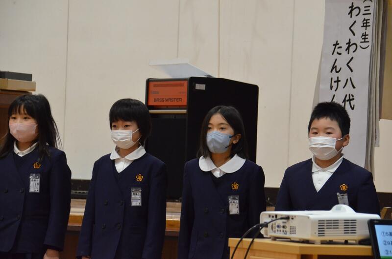 社会科見学旅行や音楽や書写、総合的な学習の時間に学んだことを発表しました。