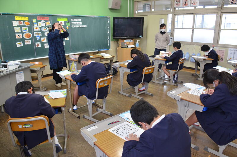 授業では学年に応じて内容を変えながら、給食センターの調理の様子や衛生管理について話を聞いたり、栄養素やバランスの良い献立を考えたりすることができました。