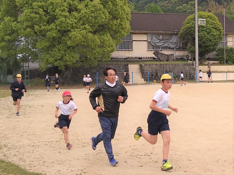 そして、本日(4月12日)がその一日目、全児童が揃ってランニングに汗を流しました。