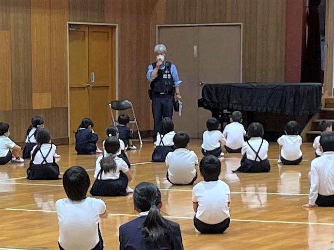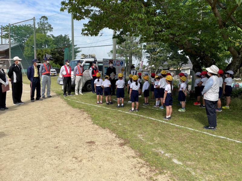 子供たち一人一人が交通安全に対する正しい知識や交通ルール、交通マナーなどを身に付け、交通事故防止を図ることを目的に「交通教室」を行いました。龍峯駐在所の方や交通指導員の方、交通安全協会の方に来ていただき、多くのことを教えていただきました。