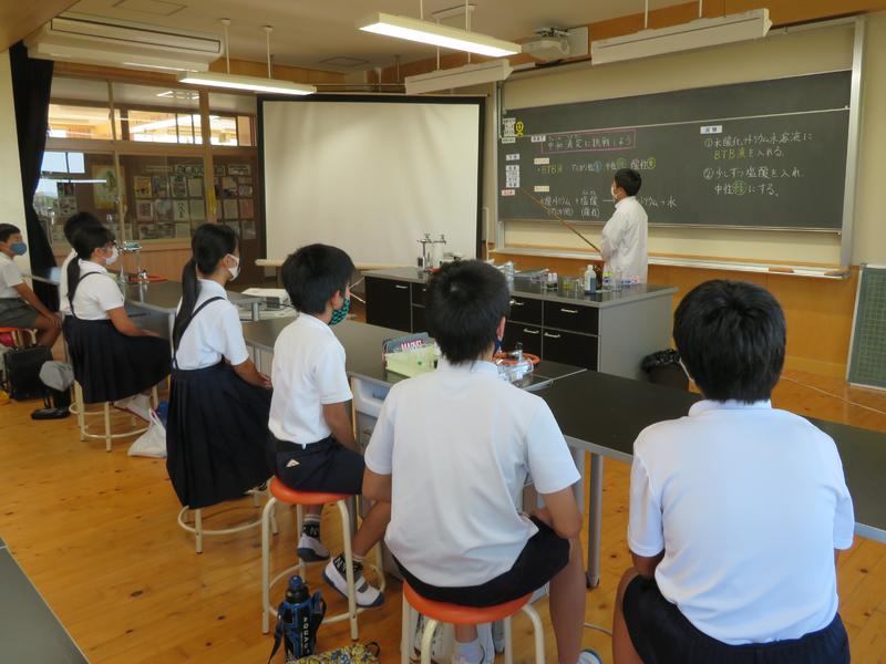 その後、子供たちは、事前に決めていた保健体育の授業を受けるグループと理科の授業を受けるグループに分かれ、それぞれ中学校の先生の指導のもと、授業を体験させていただきました。