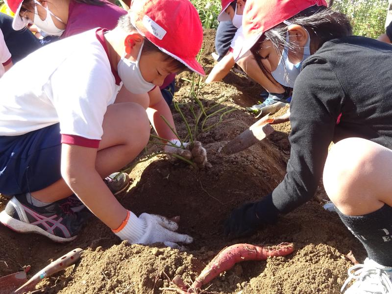11月5日(木)、晴天の中、1・2・3年生の子供たちは、芋掘りを体験しました。