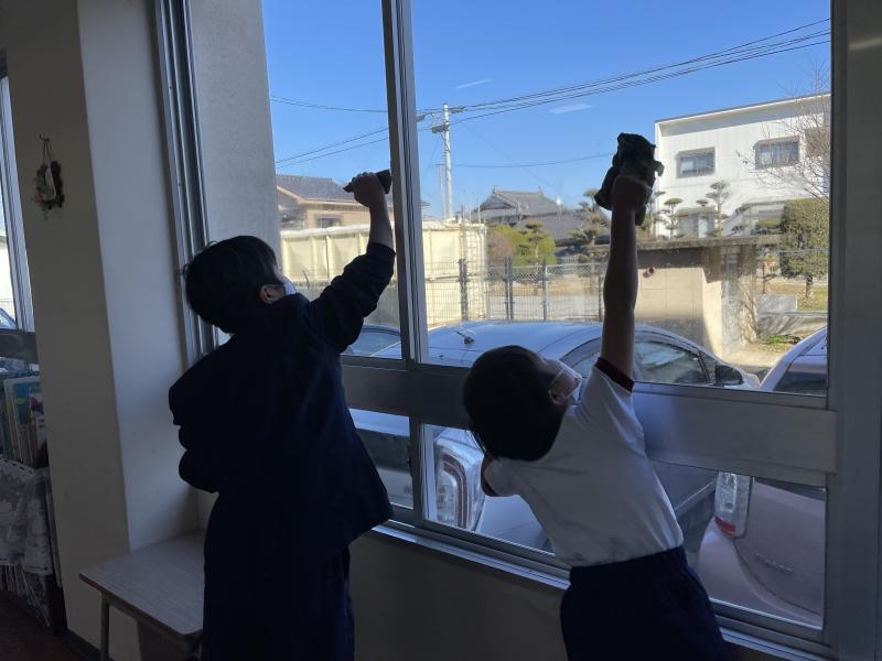 1月20日(水)、2校時と3校時の間の休み時間に、全校児童による「窓ふきボランティア」がありました。