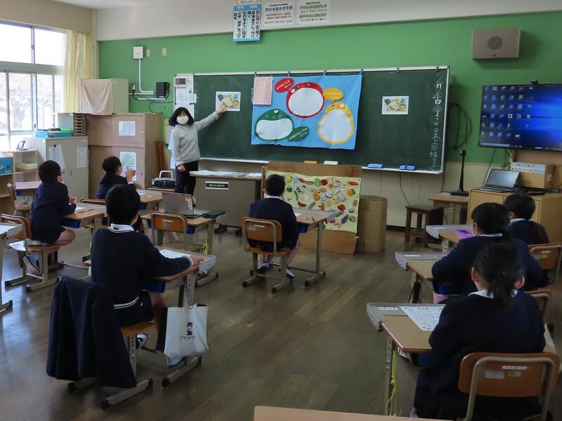 2月1日(火)、1年生と4年生は、食育の授業を受けました。