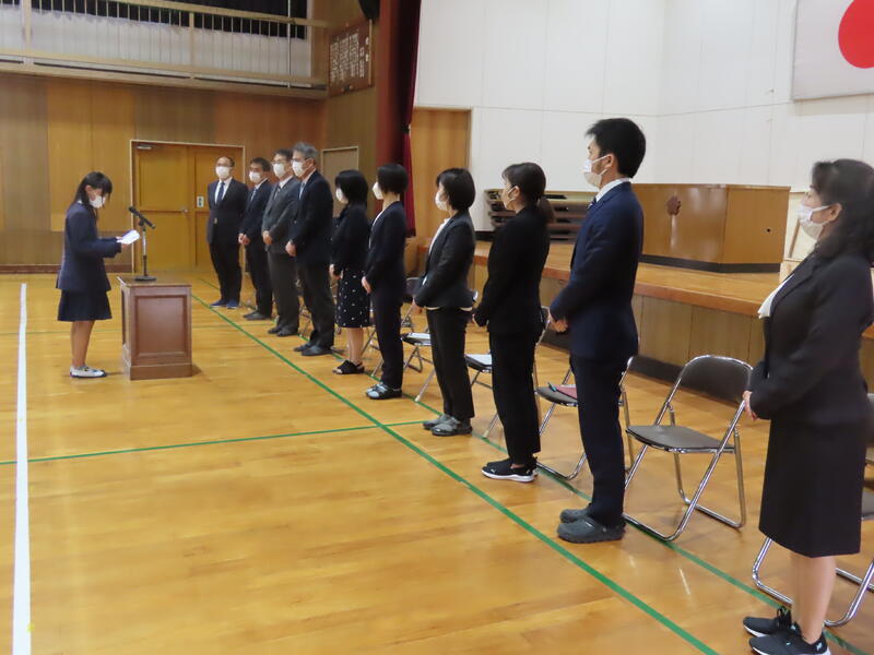 3月30日(水)、体育館にて、転・退職される先生方を送る「退任式」を行いました。