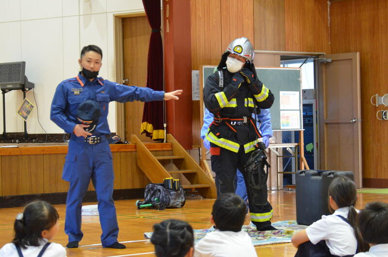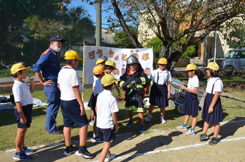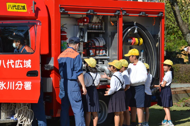 10月23日、3年生が八代広域行政事務組合鏡消防署氷川分署の隊員さんをゲストティーチャーに迎え、「消防署の仕事」について学習しました。