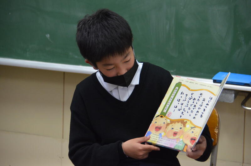 2月29日、図書委員会のメンバーが企画した絵本の読み聞かせを全学年で行いました。