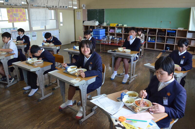 最後の給食も楽しく、おいしく、うれしそうに食べていました。