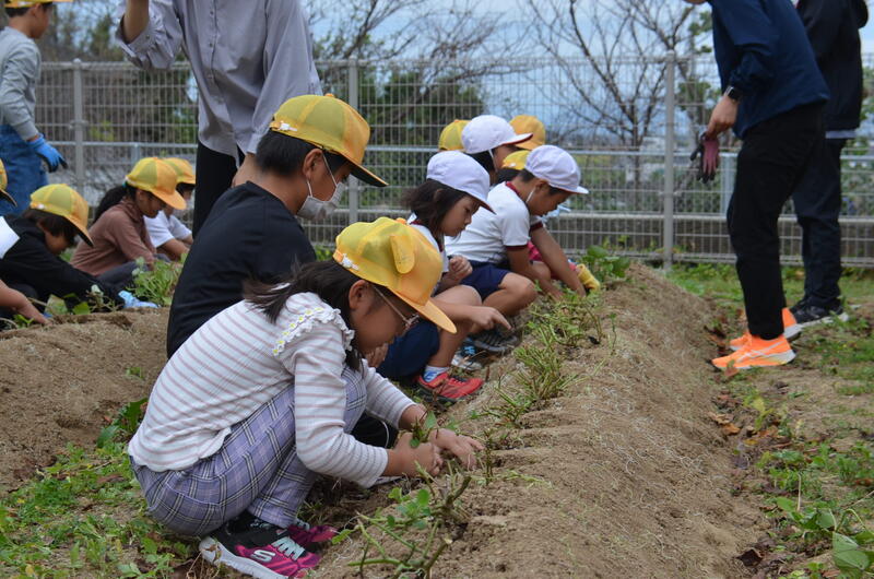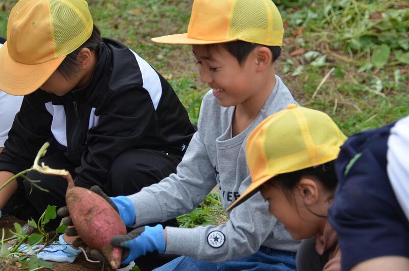 子供たちは大きくなったサツマイモを傷つけないように丁寧に手で掘り起こしていました。