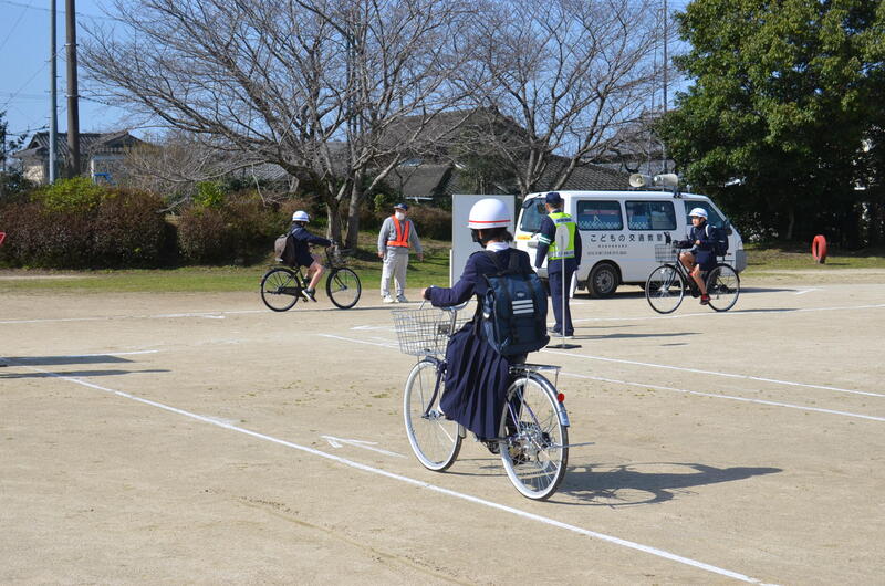 3月7日、6年生は中学校に進学すると同時に自転車で通学することになります。それで、卒業を前に、自転車教室を開いて安全に自転車に乗るための方法や交通ルール、自転車安全利用五則を再確認しました。また、自転車シュミレーターを使って、自転車を運転する際に起こりうる危険を体験しながら、自転車乗用時のルールとマナー、危険予測の学習をしました。その後、運動場に作ったコースを自転車で実際に運転してみました。