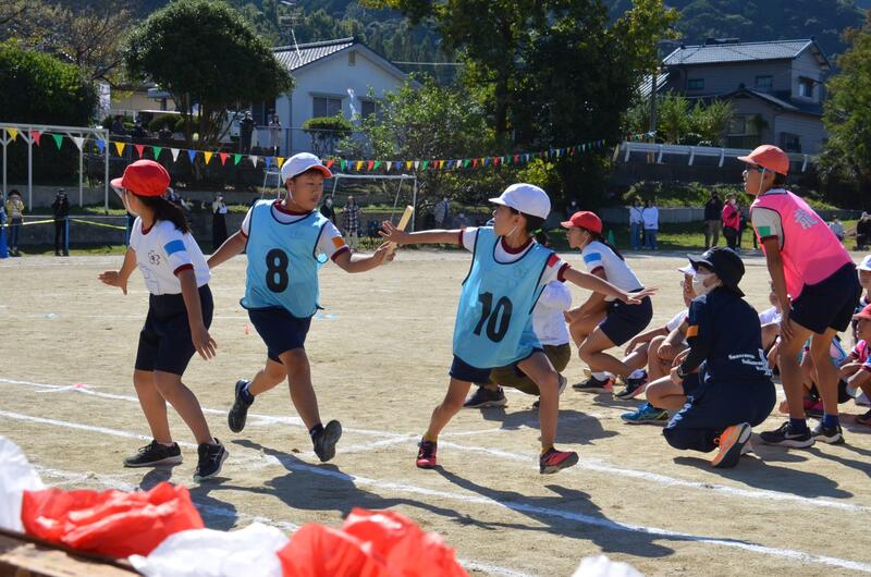 リレーも練習してきたバトンの受け渡しがスムーズできていました。