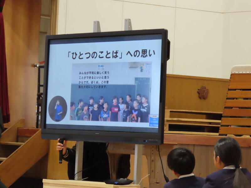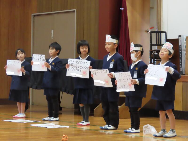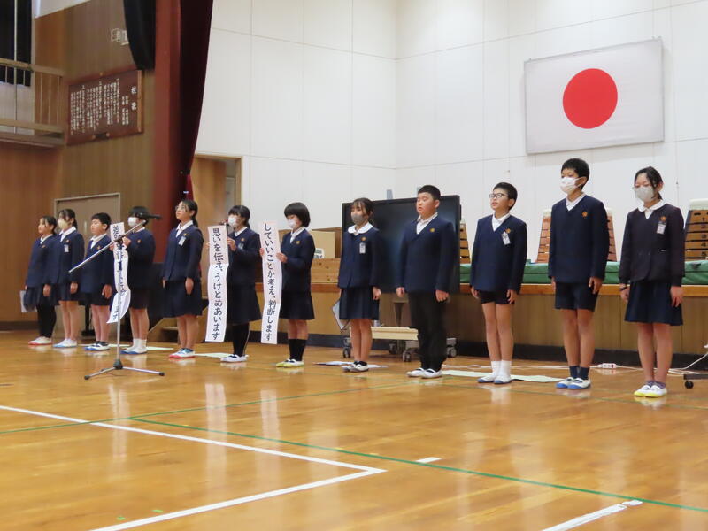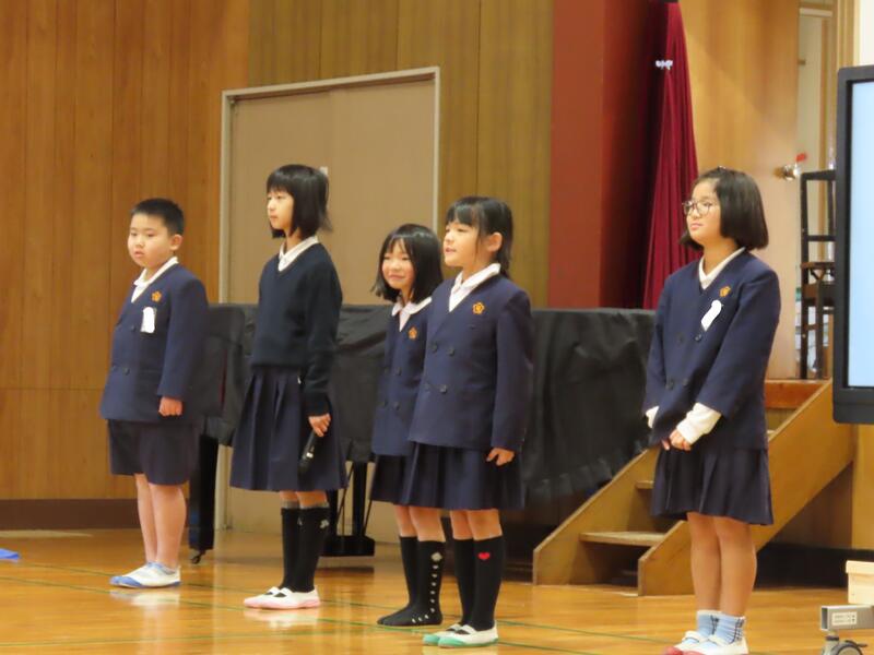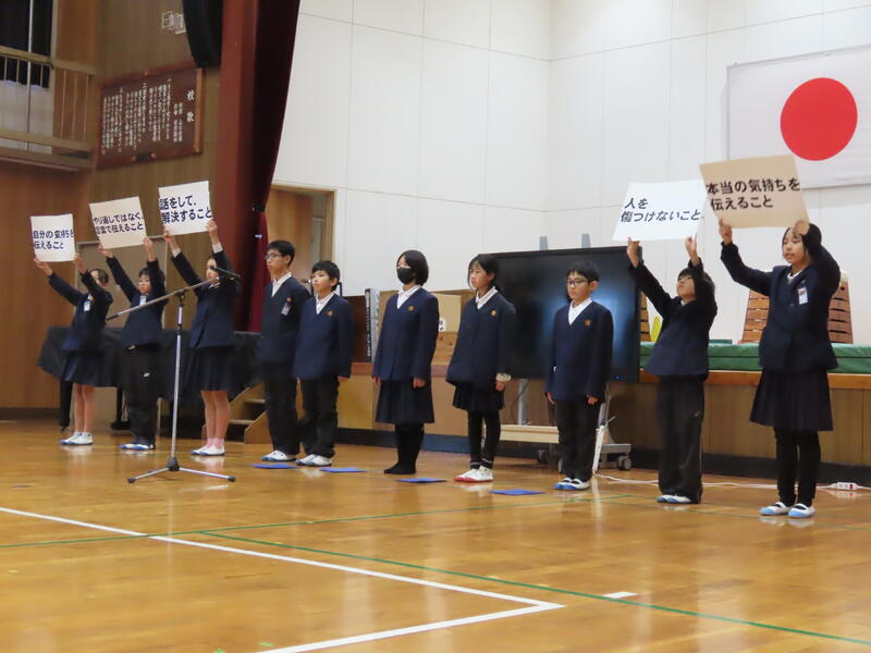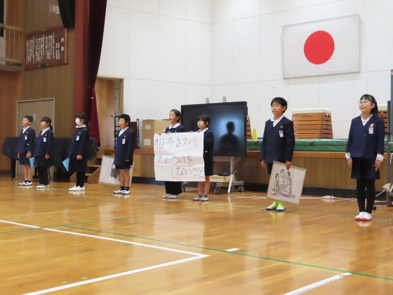 はじめに、熊本市であった「熊本県こども人権集会」に参加した運営・人権委員会から、発表があった学校の取組についての報告がありました。その後、各学年から、人権学習で学んだことを発表しました。作文発表もあり、差別をなくすために大切なことについて発表しました。各学年の学習や学びを聞き、それぞれが、人権についてじっくり考えることができた集会になりました。学んだことや考えたことをこれからの生活の中で生かしてほしいと思います。