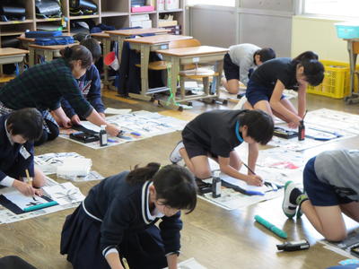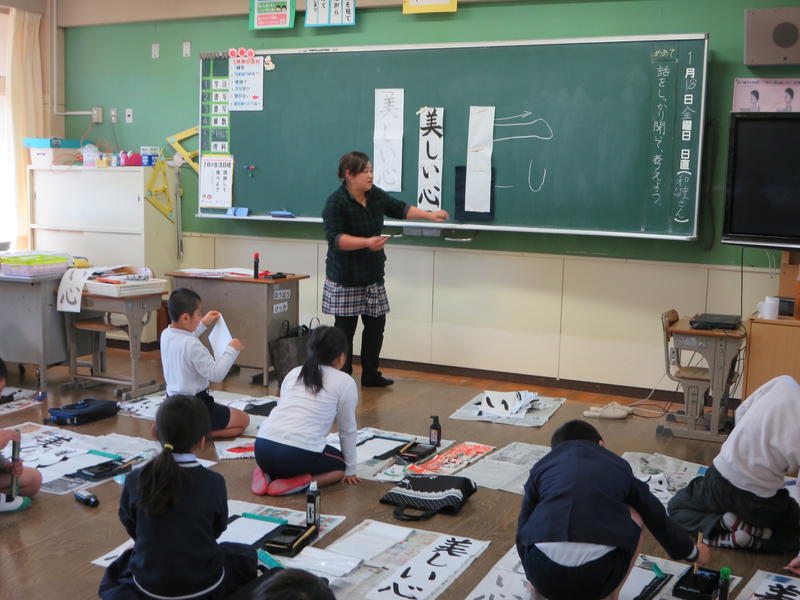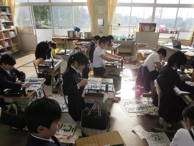 各学年、書き初めの練習に頑張っています。毎年、地域応援団から、書道の達人の林さんに来ていただき、習字の練習に頑張っています。