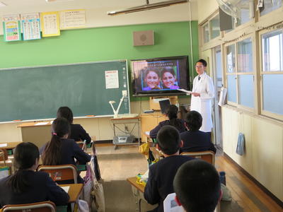 5年教室では、学校薬剤師の本村さんをお招きして、薬物乱用教室を実施しました。たばこが老化を速めたり胃がんの原因になったりすることや、覚醒剤などの麻薬の影響で、幻覚や幻聴、脳への影響など学びました。子どもたちは、薬物の中毒性の怖さを実感したようでした。