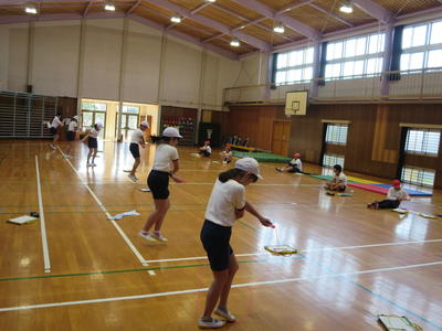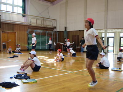 今日は、なわとび大会を開きました。低・中・高学年の3人で一組となり、とんだ数を数え合いました。持久とびを跳ぶときは、おたがいに応援し合ってがんばりました。小さい学校ならではの良さですね。これまでの練習の成果が発揮して、大会で自己最高の記録を出した子たちがたくさんいました!