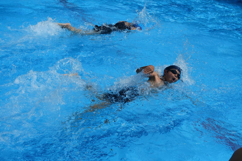 大会では、1・2年生が、小プールで、「水の中を移動する運動遊び」や「もぐる・浮く運動遊び」を楽しみ、3年生以上が、大プールで、「水泳運動」(クロールや平泳ぎ)における自己記録の更新を目指しました。みんな全力で泳ぎ、全力で拍手を送る姿に感動しました。