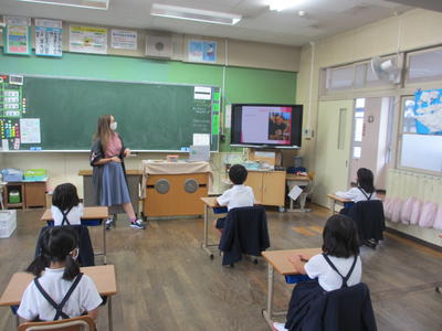 10月28日(水)、1年生は入学して初めて、アマンダ先生と一緒に英語の学習をしました。