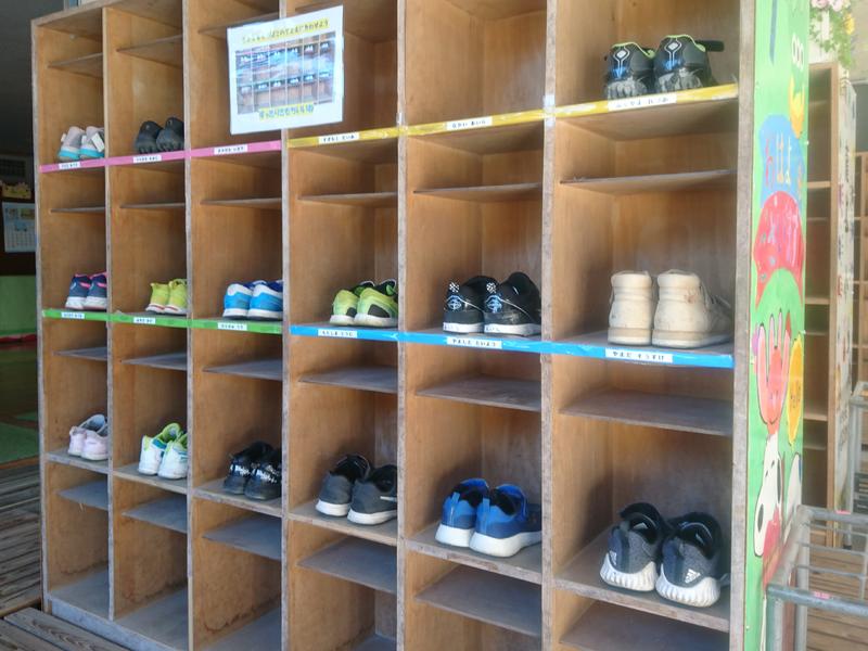 なんと素晴らしいことでしょう。下の写真は、1年生の靴箱の様子です。すべての靴のかかとが靴箱のへりに見事に揃えられています。それも毎日のことで習慣化しています。