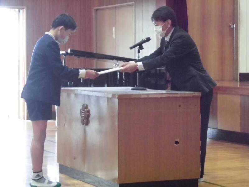 式では、まず、1年・3年・5年の代表児童が、2学期の振り返りや3学期の目標などについて話しました。とても立派な態度での発表でした。