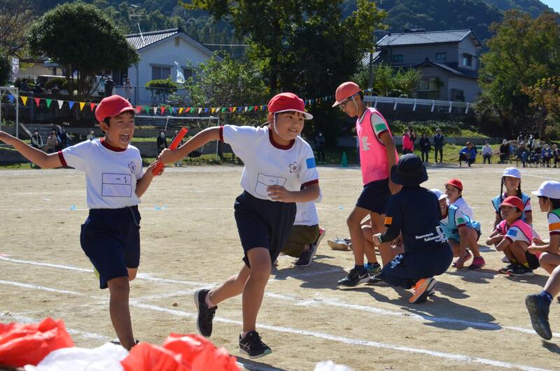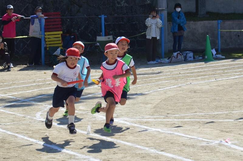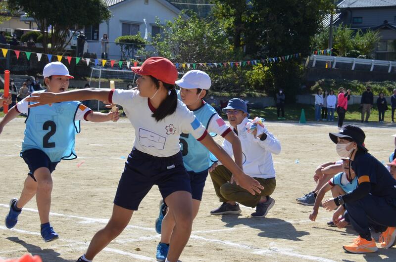 リレーも練習してきたバトンの受け渡しがスムーズできていました。