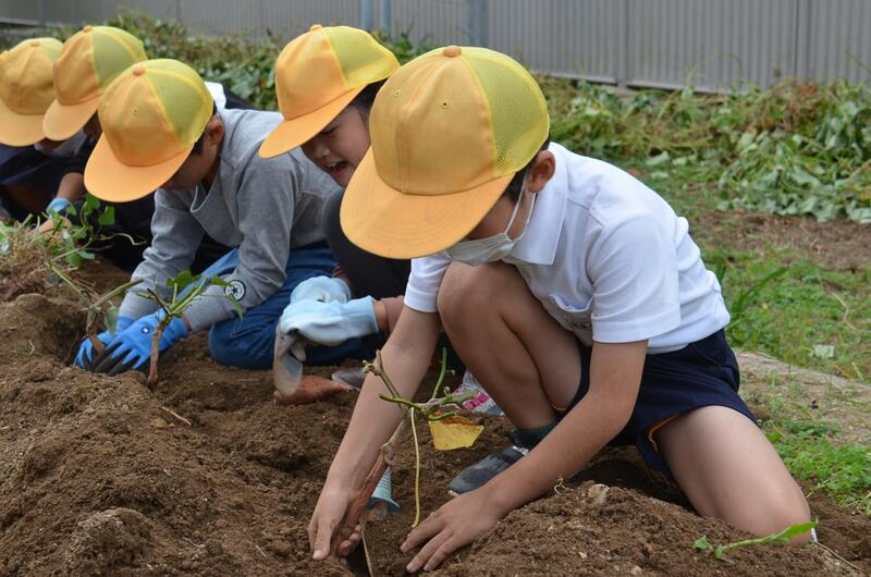 子供たちは大きくなったサツマイモを傷つけないように丁寧に手で掘り起こしていました。