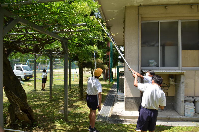 剪定の指導は、50余年にわたり本校の藤棚の手入れにたずさわっていただいている川上さんにお願いしました。