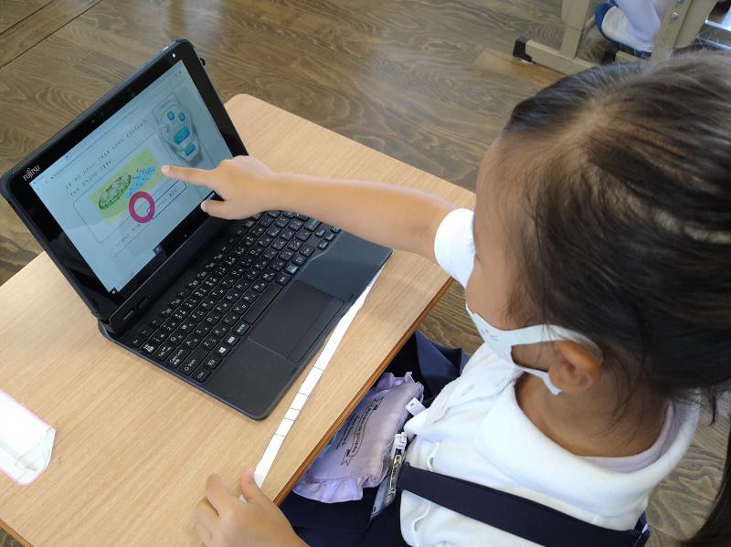 7月15日(木)、1年生が初めてタブレットパソコンの操作を行いました。