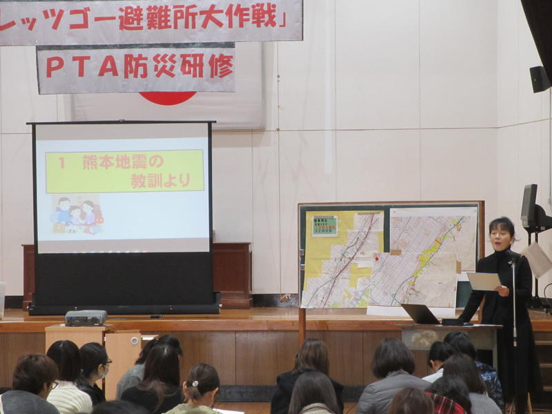 保護者・地域の皆様と「レッツゴー避難所大作戦」のテーマで避難所のシュミレーションを行