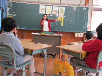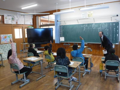 交流会のあと、5・6年生に分かれて、算数の授業をしました。