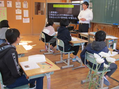 相良北小学校でも2名の人権擁護委員を招いて、低学年高学年に分かれ、命の大切さやSNSn沖県政について学びました。