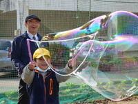 大きな大きなシャボン玉ができました。四浦の空、高く高く近くの山を越えて飛んでいきました。