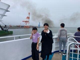 残念ながら雨天のため船の前で集合写真は撮れませんでしたが、22億円という大きな船を見て驚いていた子供たちでした。