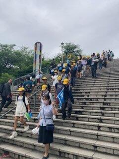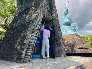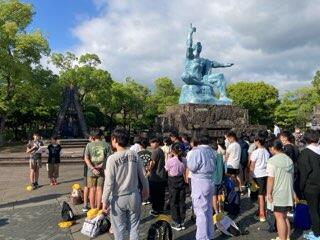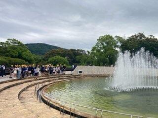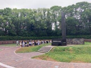 原爆資料館を見学した後、平和記念公園や原爆落下中心地、如己堂、山里小学校の防空壕を歩いて巡り、フィールドワークを行いました。