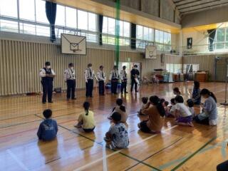 今日は、深水駐在所の警察官の方や交通指導員の方々、相良村役場の職員の方々においでいただき、交通教室が行われました。あざみ園の子供たちも一緒に、交差点の横断の仕方を教えてもらったり、実際に歩いて演習をしたりしました。