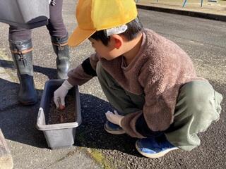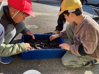 花の種まきも行いました。小さな種から、どんな花が咲くのかな?と、春を思い浮かべながら活動する姿が見られました。