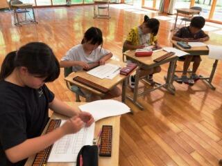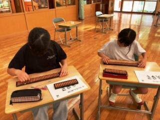 そろばんに初めて触る子も多く,はじめは指使いに苦戦していましたが,次第に慣れて素早く珠を入れたり払ったりすることができるようになりました。