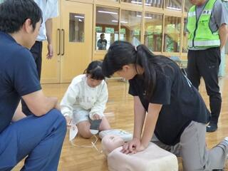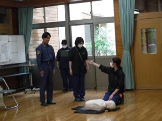 実際に胸骨圧迫をしたりAEDを使ったりして演習しました。