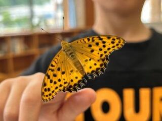 子供たちは、ツマグロヒョウモンを育てることによって、虫にも大切な命があることを学んでいます。