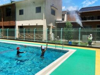 先日のPTA美化作業でとてもきれいになったプールで,楽しく活動することができました!
