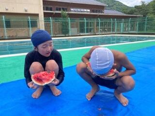プール納めでのスイカ割りや,5人で輪を作った伏し浮きは,5人全員が協力して一致団結することができた成果でしたね!