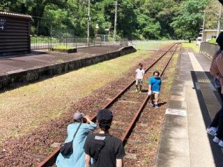 線路の敷地内に降りて,気分は「スタンドバイミー」…!?な子供たち。