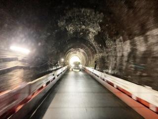 一時的に線路を道路にしてあるため,列車のトンネルを自動車で通りながら,石造りの様子を間近で見ることができました。