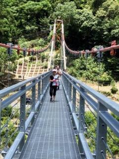 急遽,みんなで渡ってみることに。ゆれるし高いしでスリル満点でした!!