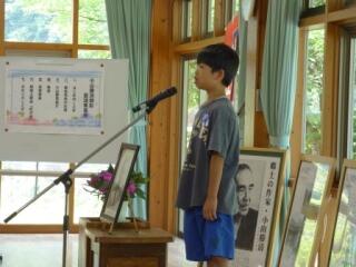 子どもたちは、地域出身の作家・小山勝清の書いた「彦一とんちばなし」の中から選んだ話を一生懸命に暗記し、心を込めて発表しました。