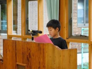 子どもたちは一学期に頑張ったことや、夏休みに楽しみにしていることを発表しました。