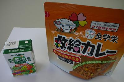 するために、災害食として考えられた救給カレーと野菜ジュースの献立となり